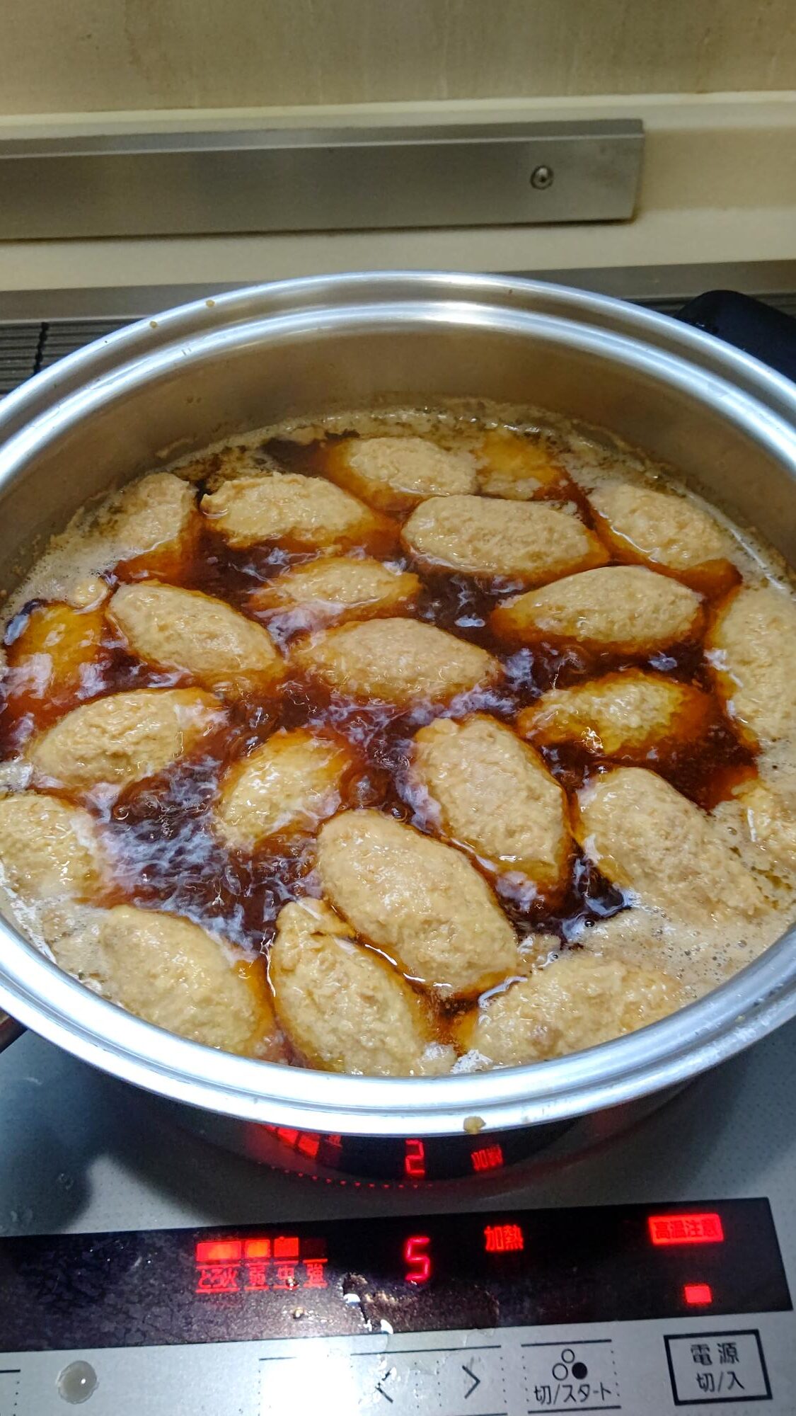 1)挽肉に卵、白味噌、片栗粉を混ぜ