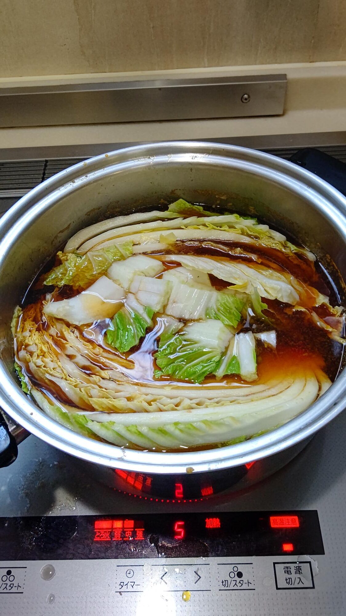 5)白菜は大胆に半分をそのまま鍋に入れて